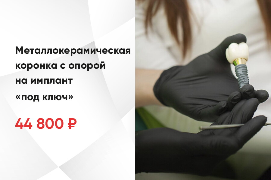 Металлокерамическая коронка с опорой на имплант «под ключ»