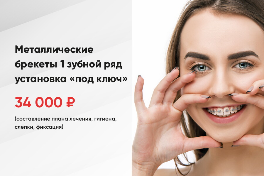 Металлические брекеты 1 зубной ряд установка «под ключ»